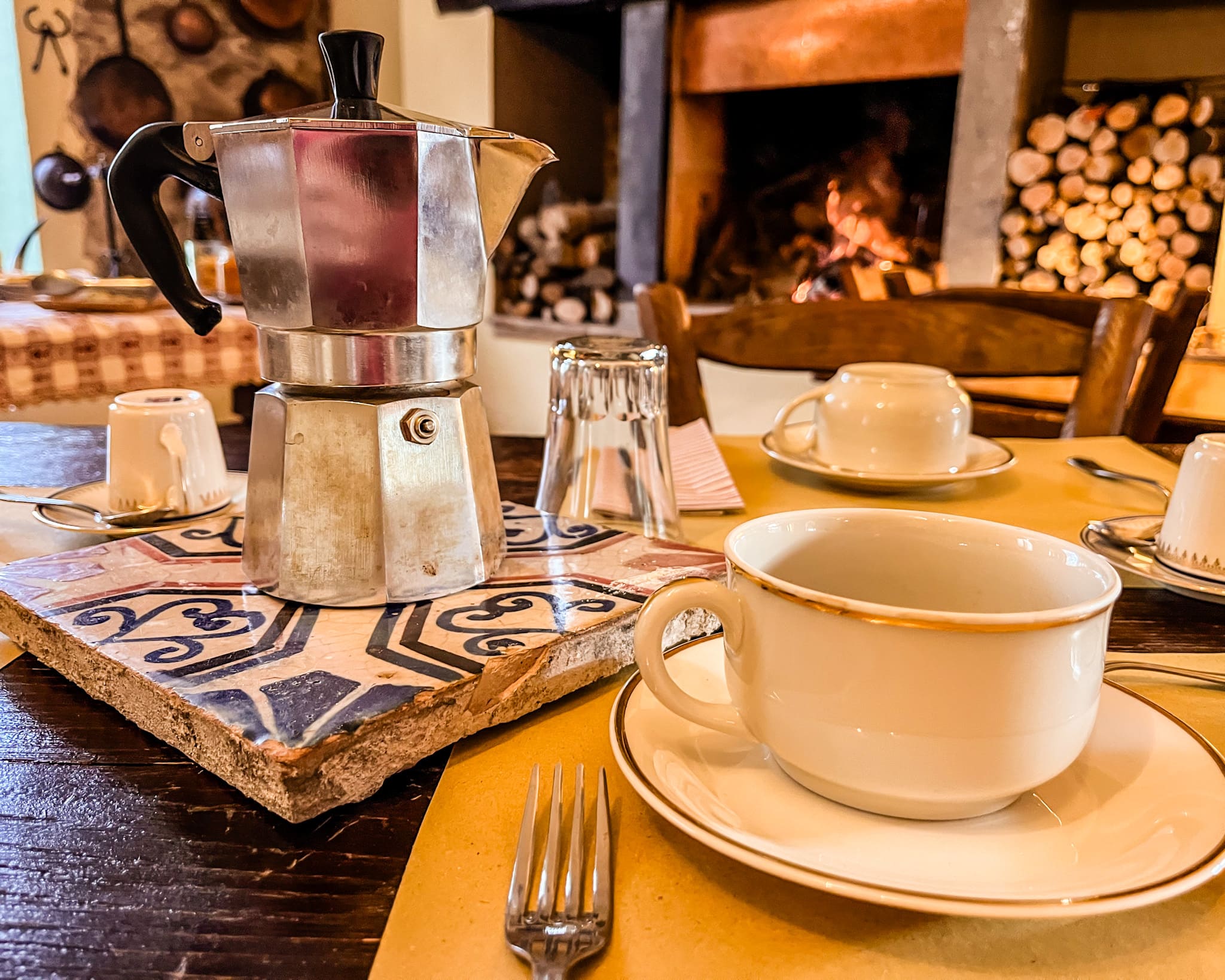 La prima colazione è un tripudio di autentica bontà, e il profumo dei dolci in forno e del caffè inizia a spandersi nell’aria alle prime luci dell’alba. Non puoi resistere al richiamo dei plum cake artigianali, delle crostate ripiene di marmellata fatta in casa, dello yogurt fresco di pascolo e dei golosi biscotti appena sfornati. La chicca? La moka, fatta come ai vecchi tempi, e il servizio di porcellana antico, come quello delle nonne. Il fuoco del camino poi enfatizza tutte le emozioni del risveglio invernale: il tepore, la lentezza, l’ozio. Ecco perchè a L’Ottava Goccia il tempo sembra fermarsi.