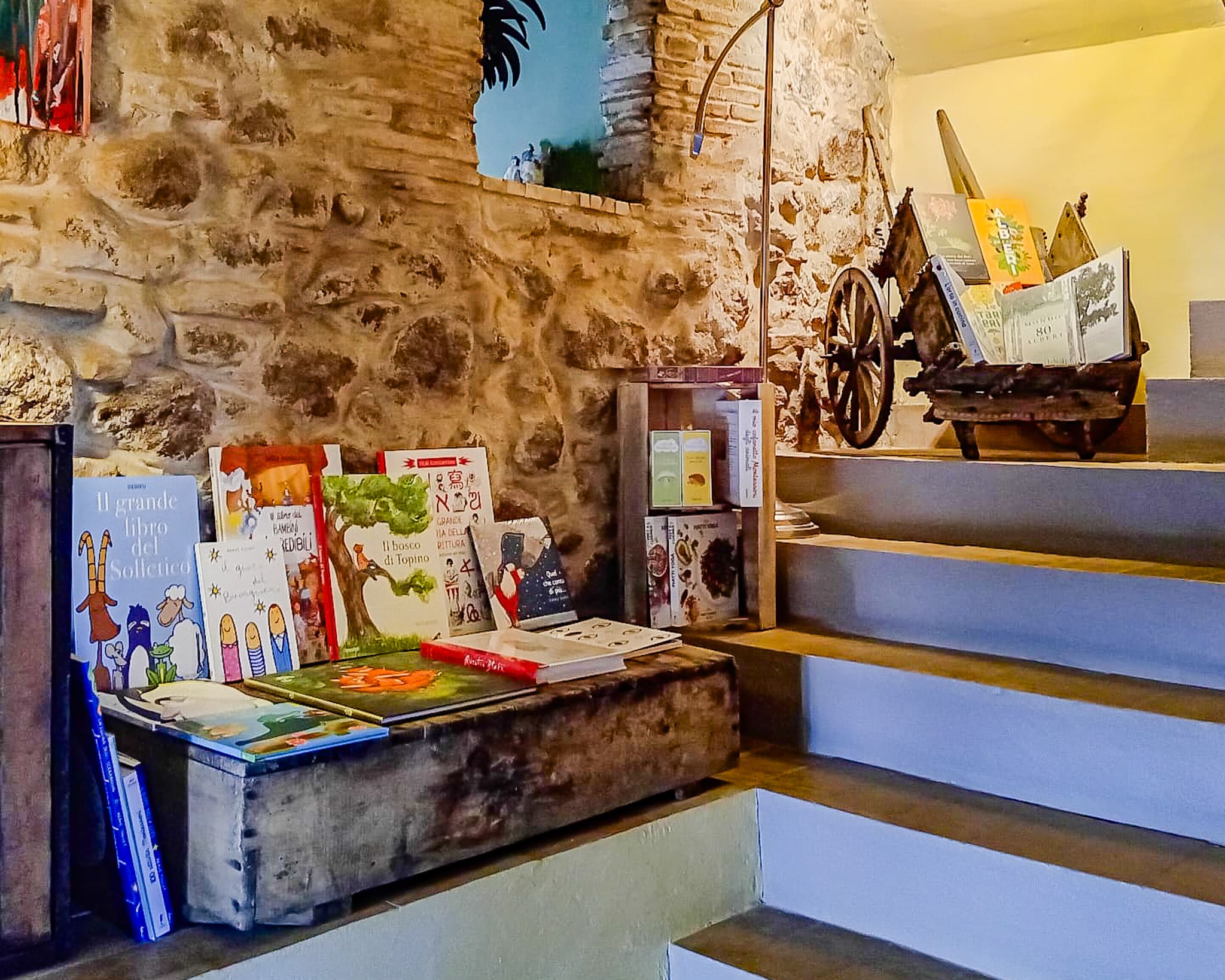 Storie che possono rivivere anche nei meravigliosi albi illustrati a disposizione nella sala principale dell’agriturismo, selezionati dalla maestra Giovanna de Il mondo in un albo illustrato. Una buona lettura prima di andare a dormire aiuta i bambini a rilassarsi dopo una giornata intensa. Le storie catturano la loro immaginazione, allontanano le preoccupazioni e favoriscono un senso di calma che li prepara al sonno. A differenza degli schermi, che possono stimolare e disturbare il ciclo circadiano, la lettura promuove un passaggio dolce dal giorno alla notte. Aiuta i bambini a spegnere la mente senza essere sovrastimolati. Ah dimenticavo di dirti che in questo agriturismo non ci sono televisioni per fortuna!