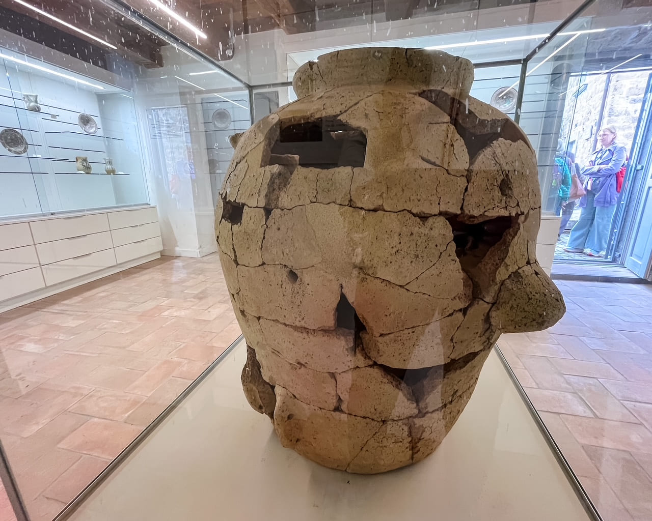Sempre all’interno del percorso espositivo, che rappresenta un ulteriore affascinante scorcio sulla vita quotidiana del passato, trovi un reperto di grande rilevanza archeologica, un raro glirarium, un contenitore utilizzato per l’allevamento e l’ingrasso dei ghiri, considerati una prelibatezza nella dieta etrusca, oltre a numerosi utensili domestici risalenti al IV secolo a.C. Questi oggetti ci offrono uno spaccato vivido e concreto delle abitudini e dell’organizzazione familiare in epoca etrusca, restituendoci la dimensione più umana e quotidiana di una civiltà tanto affascinante quanto sofisticata.