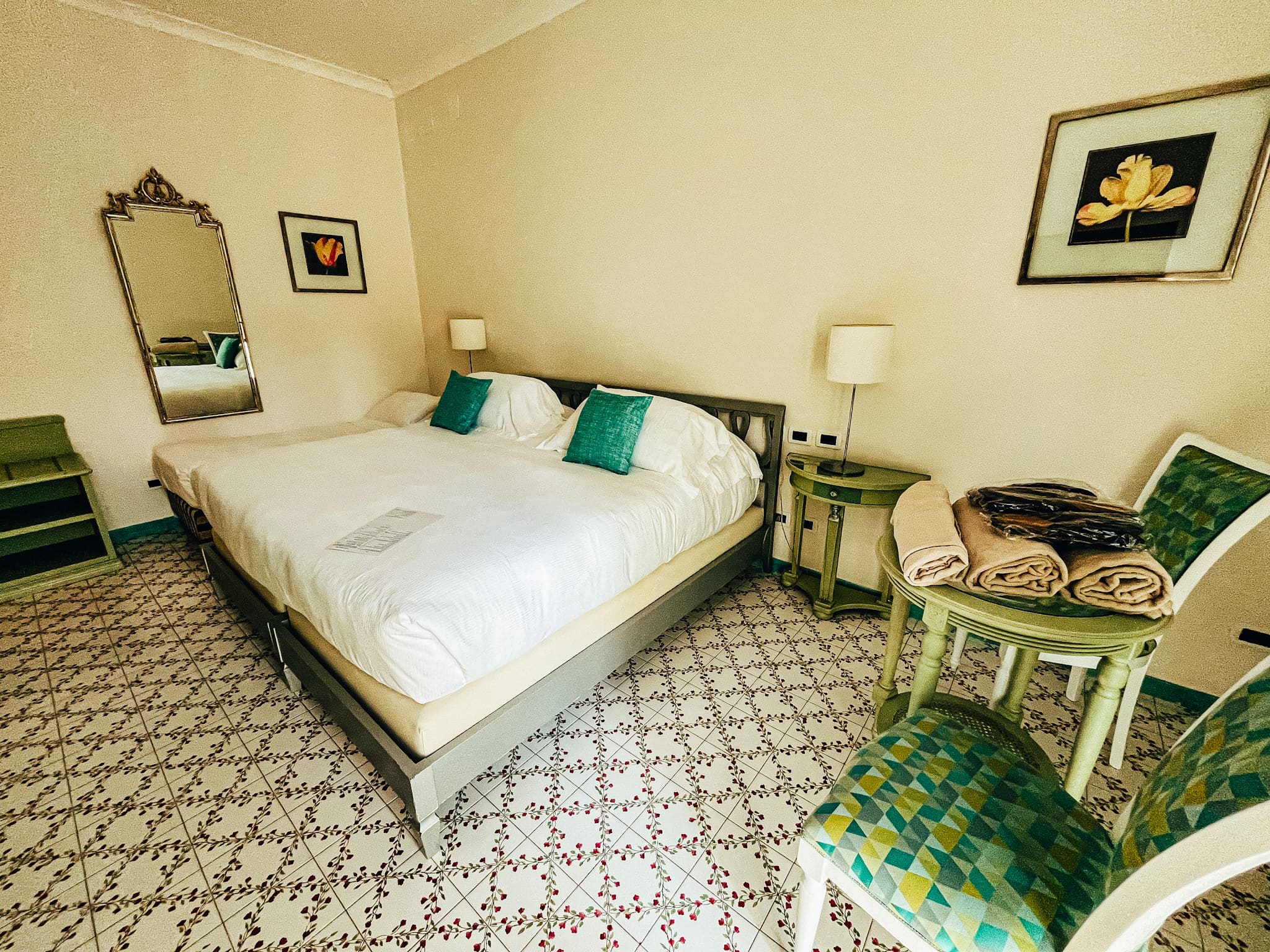L’Albergo La Reginella di Ischia offre una varietà di camere pensate per soddisfare ogni tipo di viaggiatore. Dalle eleganti camere standard con vista sul giardino alle suite panoramiche con terrazze private, ogni stanza è arredata con gusto e attenzione ai particolari: pavimenti in maiolica dipinta a mano, tessuti pregiati, mobili dal fascino senza tempo. Ma il vero lusso qui è il silenzio, interrotto solo dal canto degli uccelli e dallo scroscio dell’acqua termale che scorre discreta tra le fontane del giardino.